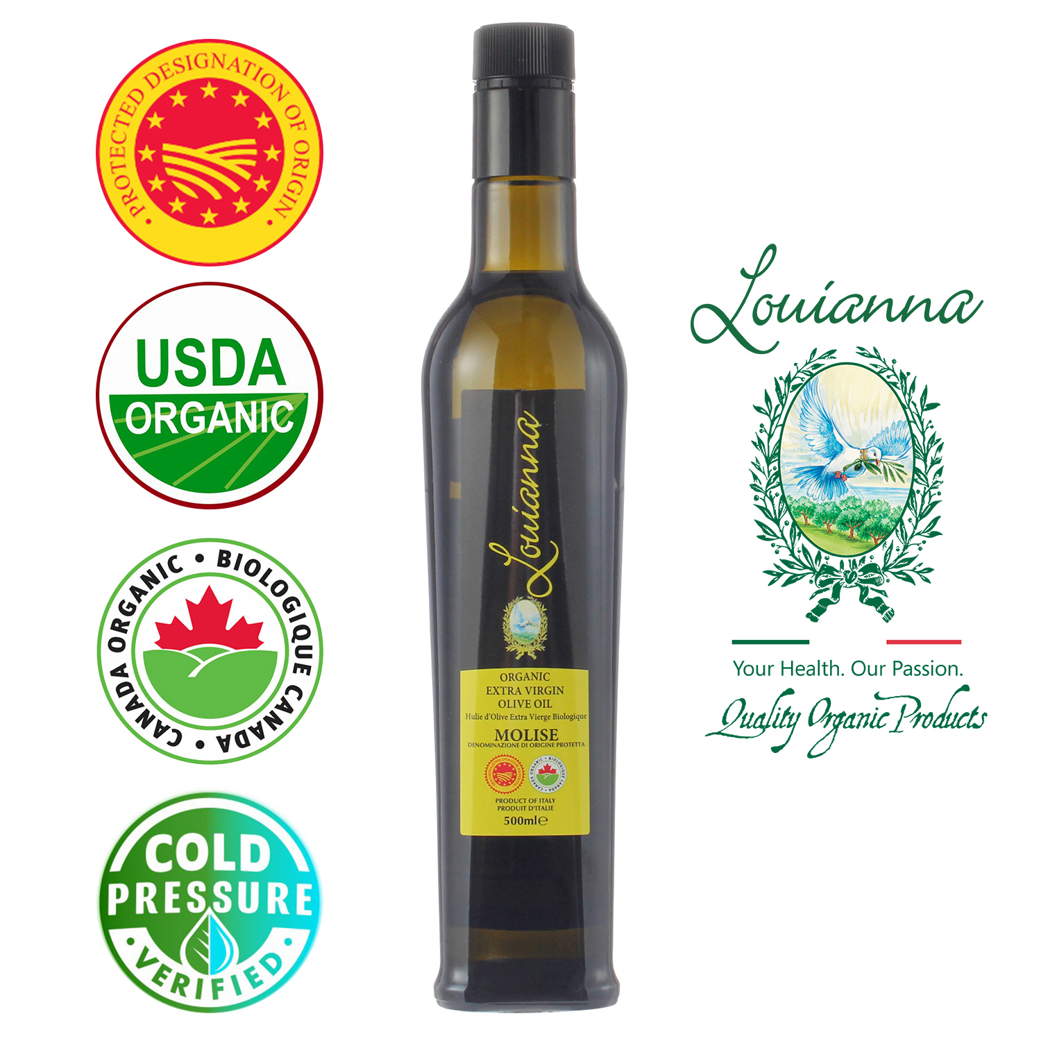 Louianna Certified Organic Extra Virgin Olive Oil is produced from our estates located in Montorio Nei Fretani, Campobasso, Molise, Italy. It is cold pressed from the freshest, most succulent olive varieties indigenous to the region.