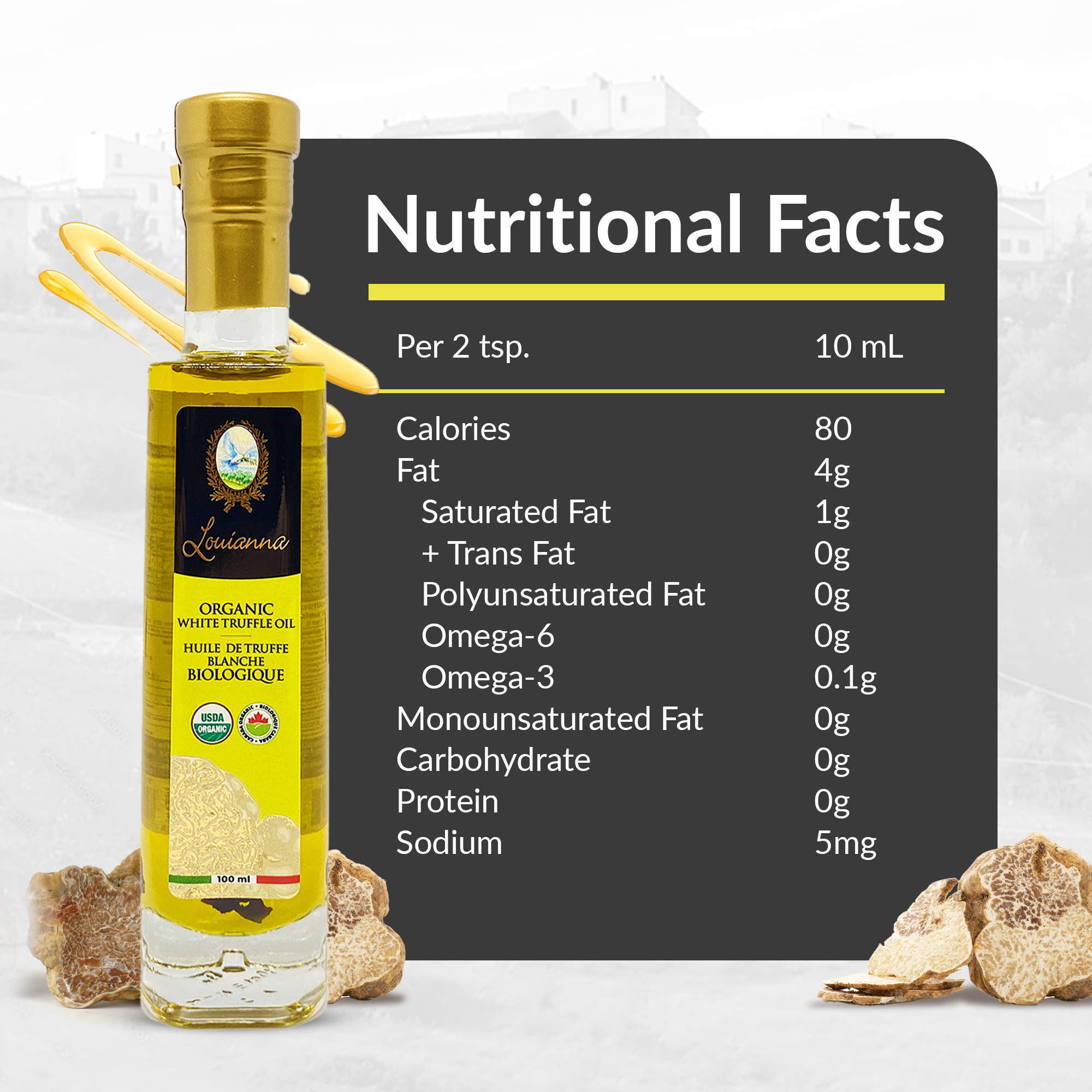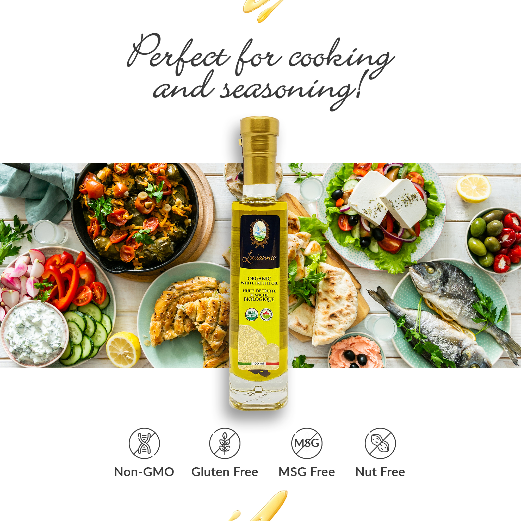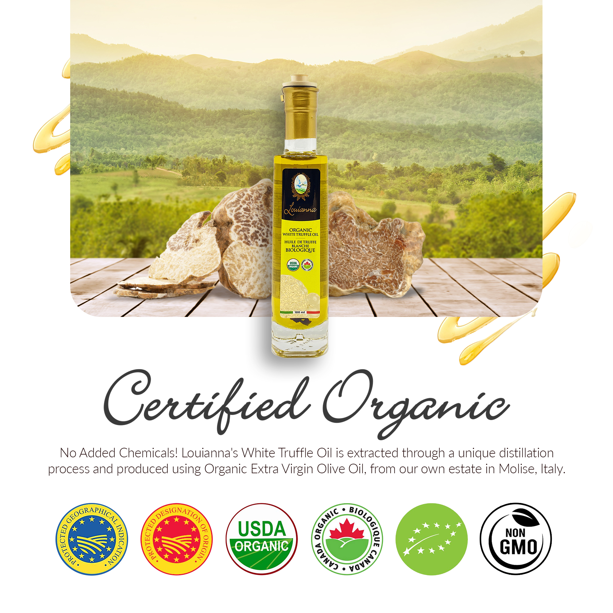 -Louianna Certified Organic Natural White Truffle Oil– USDA Organic Certified-100ml- Made with Organic Extra Virgin Olive Oil Producedin Molise, Italy