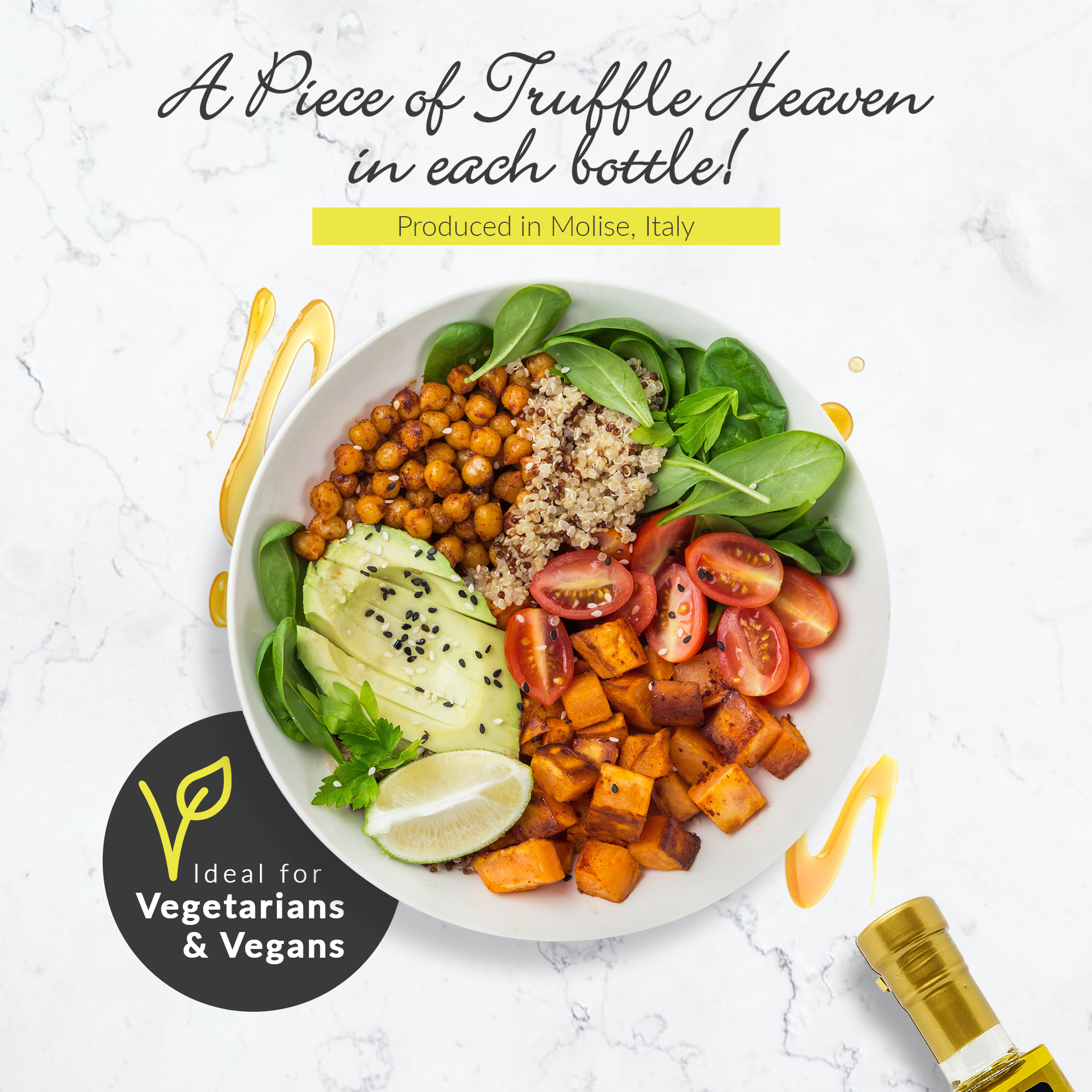 –Our white truffle oil uses only natural truffles anddoes NOT use anychemicals that are designed to mimic the taste ofa truffle as hidden in someproducts resulting in a flat taste.